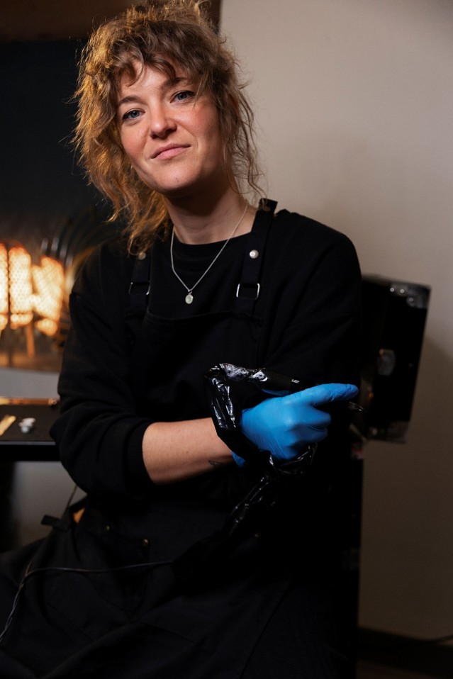 Trabalho principalmente com blackwork, explorando contrastes, delicadeza e composição, sempre guiada pela natureza e pelo imaginário. Meu processo é cuidadoso, sensível e atento aos detalhes, do primeiro traço à finalização.